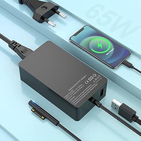 Cargador Surface Pro de 65W y Cargador USB 5W, Cargador Microsoft Surface para Surface Pro X Pro 7 Pro 6 Pro 5 Pro 4 Pro…