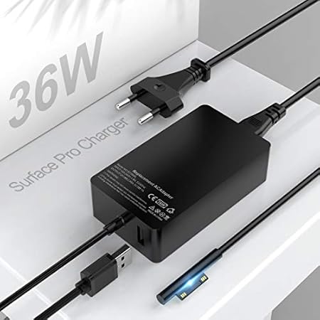 Surface Pro Cargador,Cargador Microsoft Surface de 36 W con Adaptador de Corriente de Puerto USB 2.0 de 18 W y Cable de…