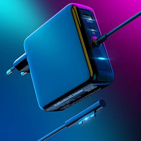 Cargador Surface Pro,44W 14V 2.58A Cargador Surface para Computadora Portátil con 30W PD Tipo C y 18W QC3.0 Adaptador…